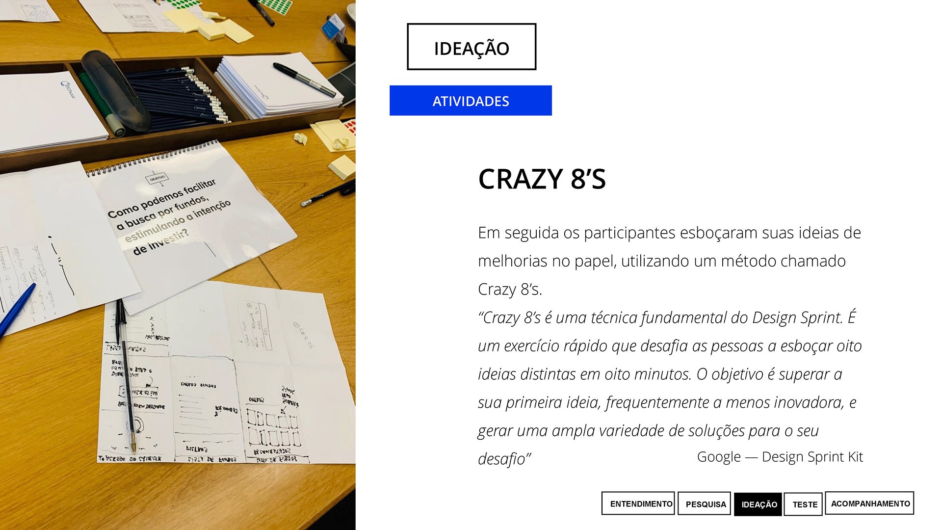 Fizemos análises de dados e pesquisas (quantitativas e qualitativas). Redesenhamos a experiência com base nos dados e cocriação com stakeholders. Criei protótipo navegável e validei com testes de usabilidade. Resultado: aumento na compreensão e conversão.